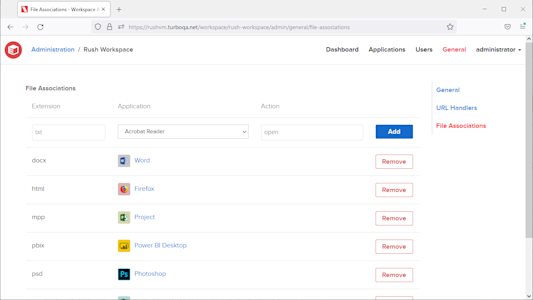 - New! File Associations can be added from the administration site to configure how users open or edit files from the file browser